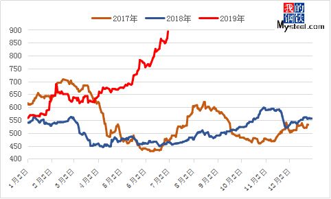 所以從主要價(jià)格因素的變化也能看出來它在逐漸的轉(zhuǎn)變,從供應(yīng)主導(dǎo)開始向需求主導(dǎo)轉(zhuǎn)移,對于目前和2019年下半年的市場價(jià)格,也需要去尋覓供需關(guān)系的“軌道”如何鋪墊,不妨從原材料的供需開始,再看鋼材的消費(fèi)力度,從而推到出未來供需走勢。