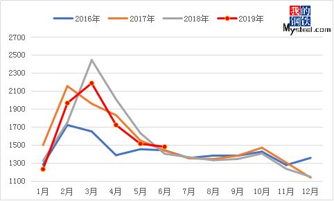另外,對于各品種來說,長材的消費(fèi)依舊強(qiáng)勁,板材的造船和汽車行業(yè)都同比下滑的情況下,使得整個(gè)板材的消費(fèi)進(jìn)入低谷期。那么對于下半年的價(jià)格走勢依然可能是長強(qiáng)板弱的趨勢。